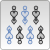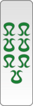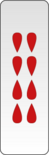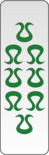 The standard Bahlian jip deck originates from around the 800s ANB and is very similar to the ancestral Doli deck, but with ranks reduced from 12 to 9. Furthermore, the suits are object-based rather than wind-based: heads, zithers, men and javelins. Plus the five lords, largely unchanged, these sum up to a total of 41 cards. They forego the use of characters entirely, instead using a system of simplified depictions of their suit names. The 1 of heads is given particular care as it is considered a central card in some games. Instead of wood, these decks are usually made of cardboard, paper or plastic.