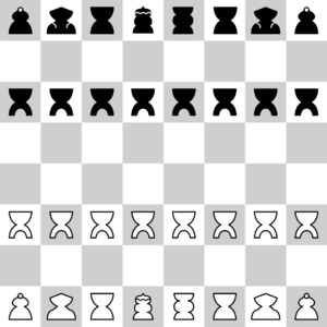 The archer (sarṭartha) moves exactly like its jushung analogue, that is, diagonally up to two tiles. Given their movement, both archers are bound to tiles with the same colour as the ones they start in.