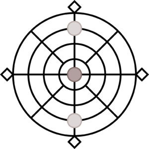 In Bahlian style, the black piece may win by successfully avoiding being captured in 20 turns. In this variant, the white pieces may enter the outer ring.